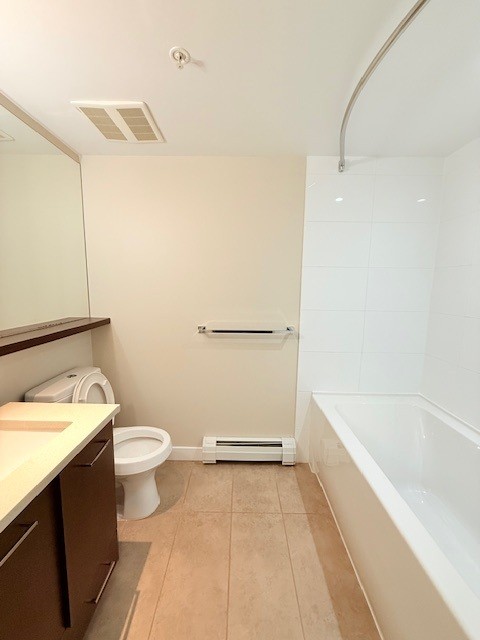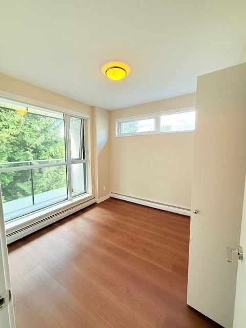A spacious 1-bedroom suite with laminate floors, stone countertops, stainless steel appliances, and a built-in dishwasher. Features in-suite washer/dryer, private balcony, and access to the fitness centre, concierge services, and Shannon Mews' historic Italian gardens and heritage estate.